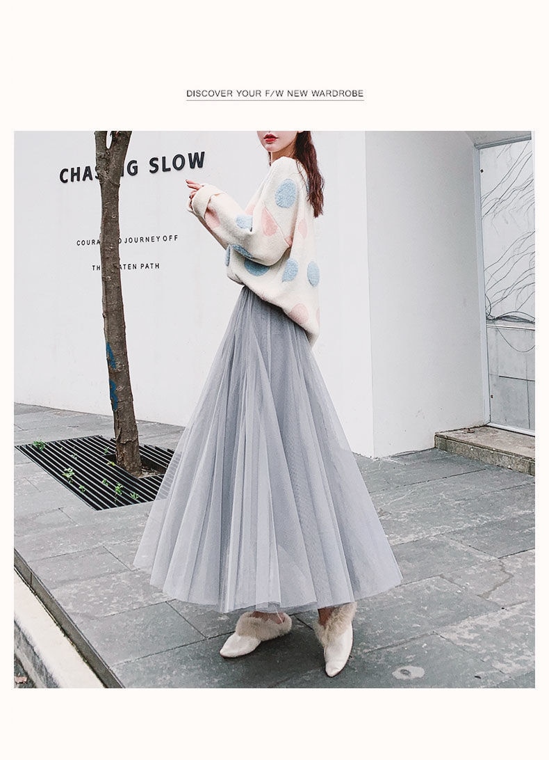 3 layers Midi Summer Tulle Skirt Women 2023 Ladies Casual White Black High Waist Pleated Sun School Long Skirt Female